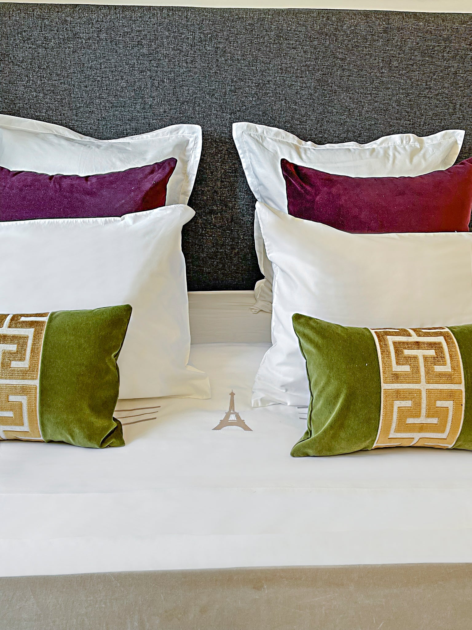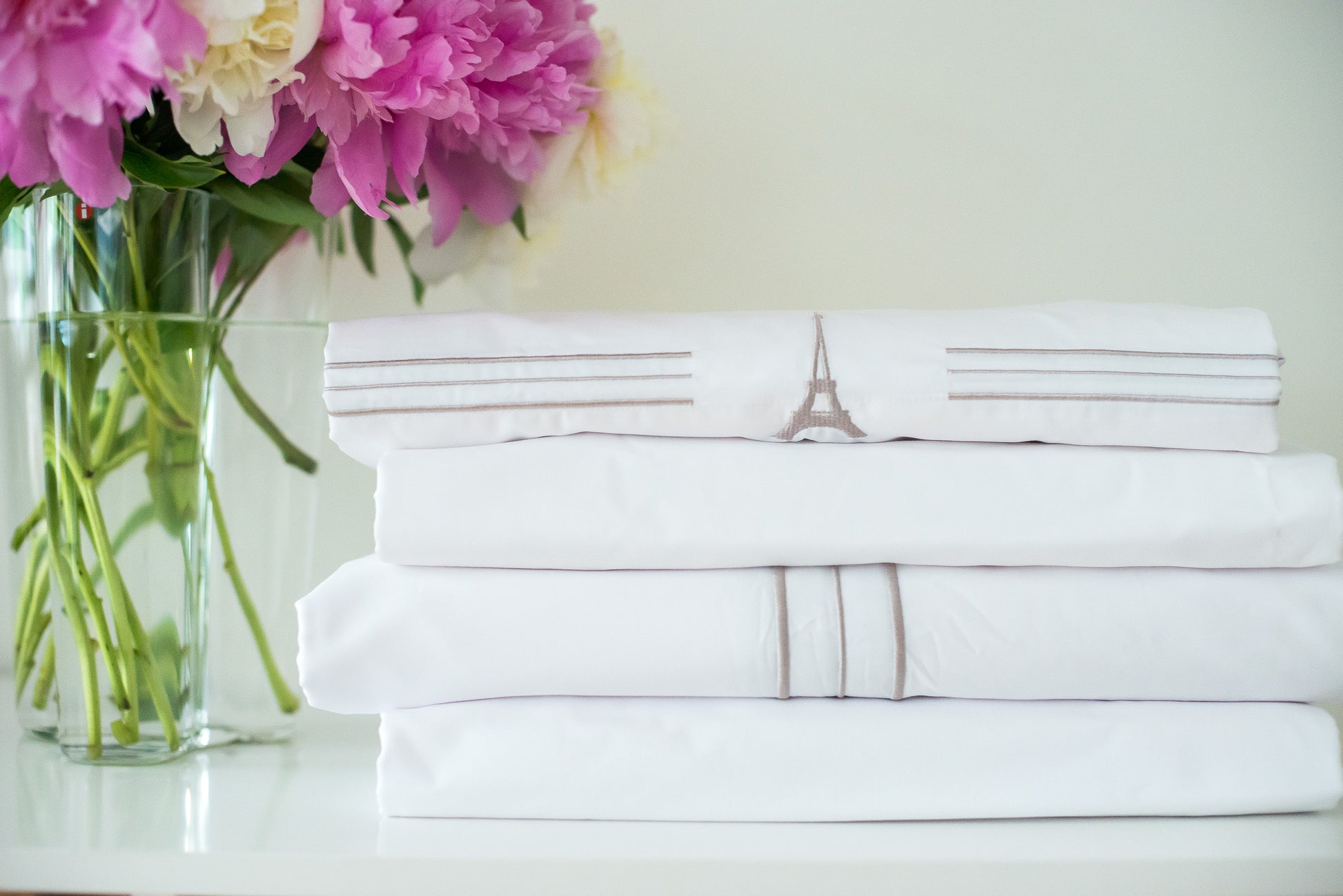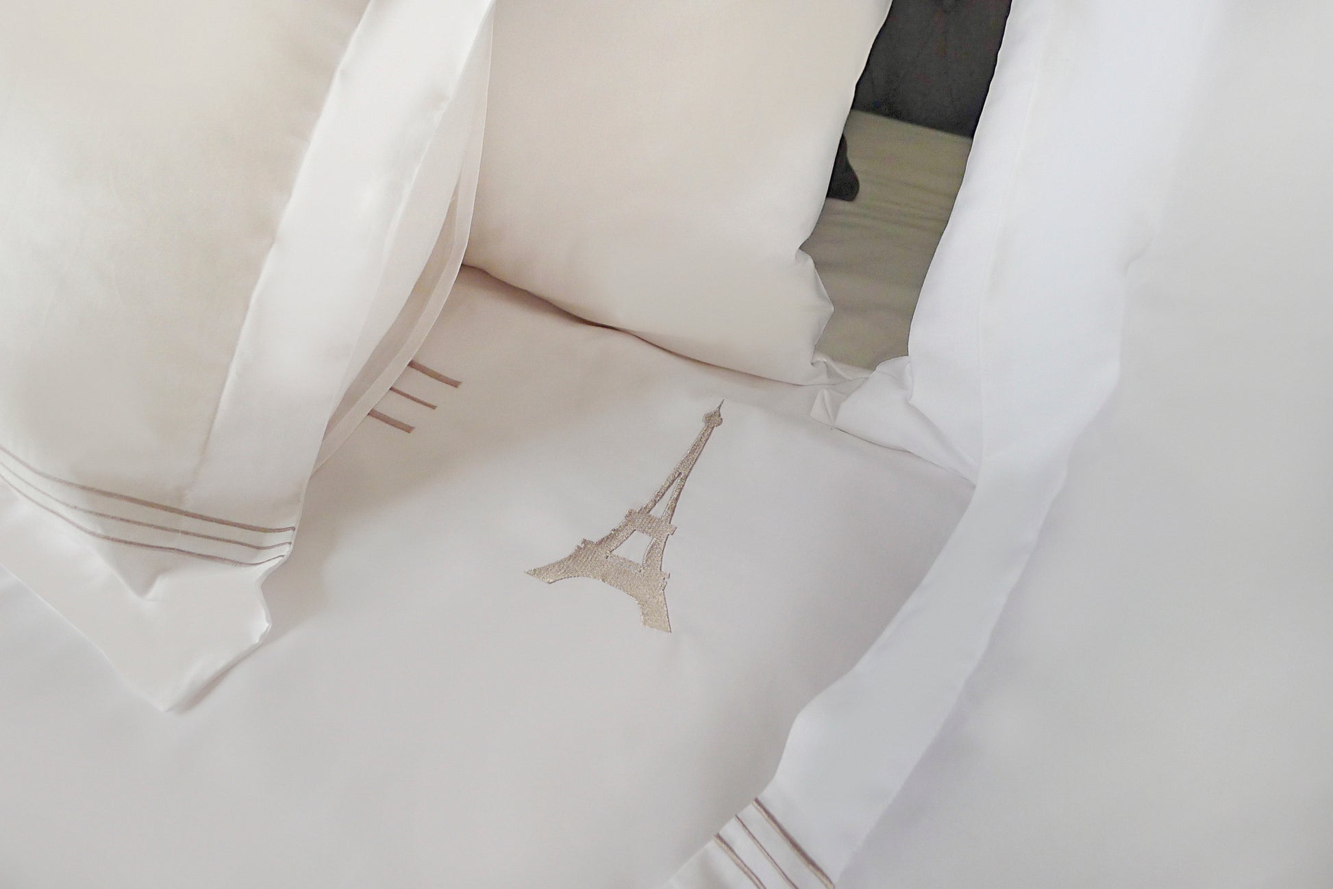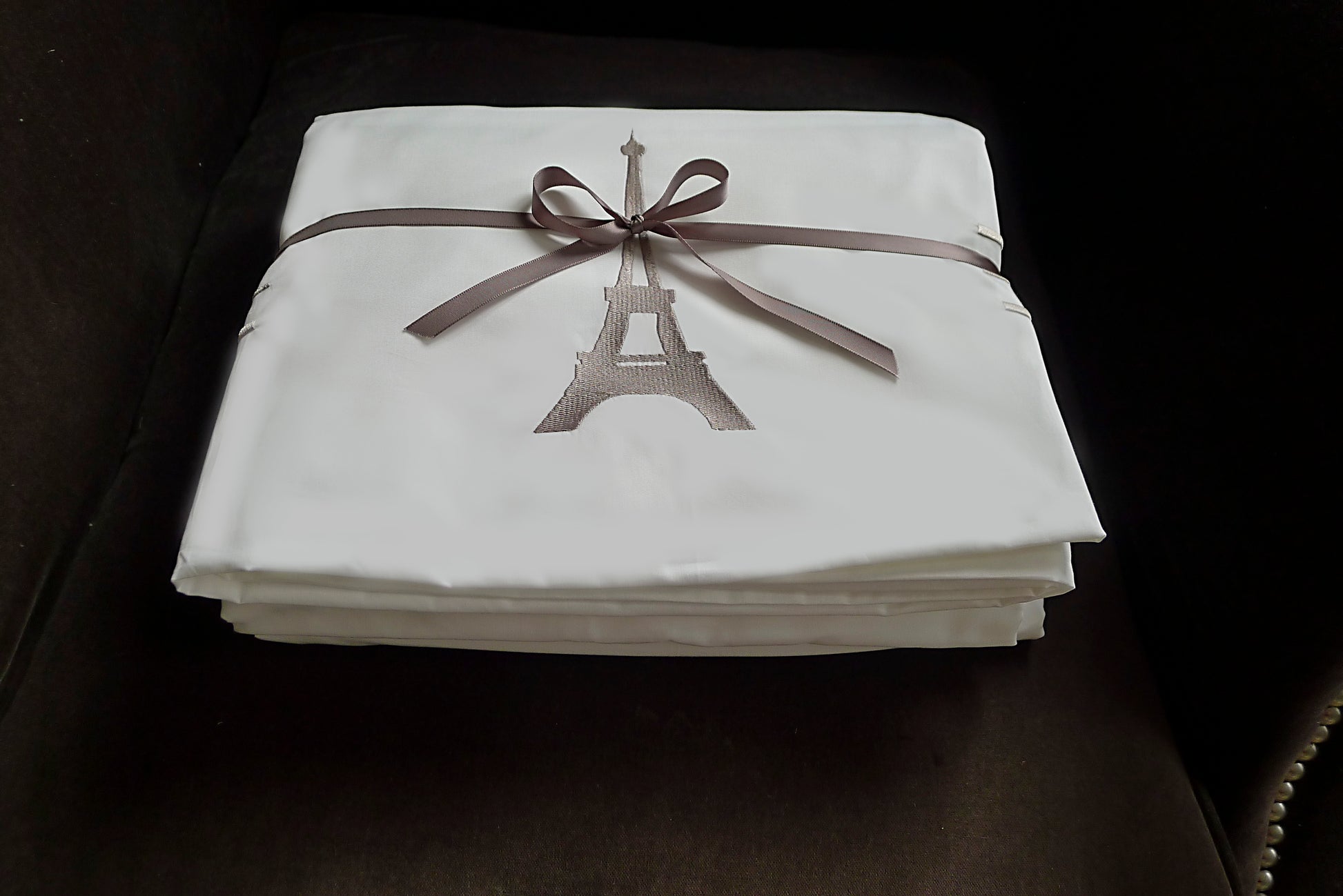 This luxurious queen size bed sheet set featuring a beautifully embroidered Eiffel Tower will help you dream of Paris in style! Designed in Paris: after almost five years of trials, we created the highest quality sheets and found the best manufacturer to embroider them. These are 5-star luxury hotel style sheets, but at half the price.